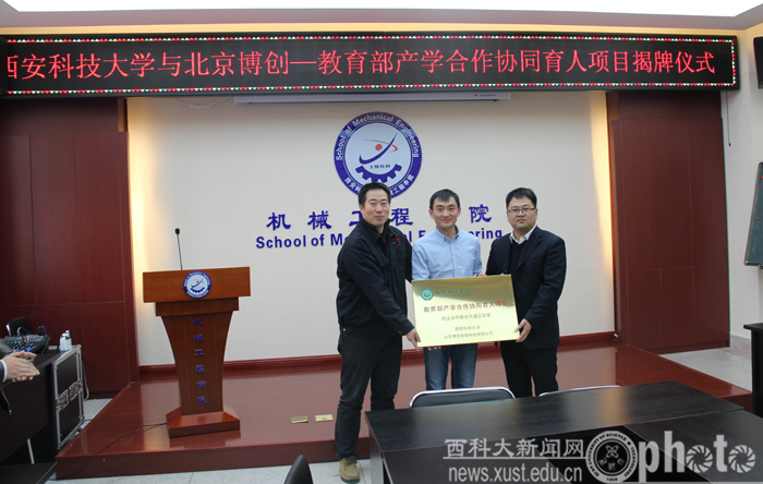 12月6日下午,机械学院在临潼校区骊山校园举行了“英国365集团官网与北京博创—教育部产学合作协同育人项目”的揭牌仪式,北京博创智联科技有限公司经理孙永刚、英国365集团官网实验管理处副处长刘琳、机械学院副院长张旭辉及师生代表参加活动。双方举行了授牌仪式,并围绕“创新创业、开放合作、协同育人”的主题,就产学合作协同育人项目进行了经验交流与分享。