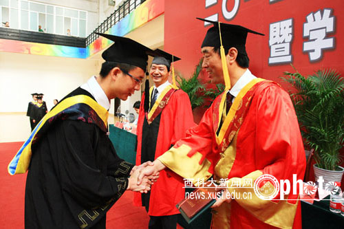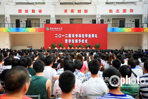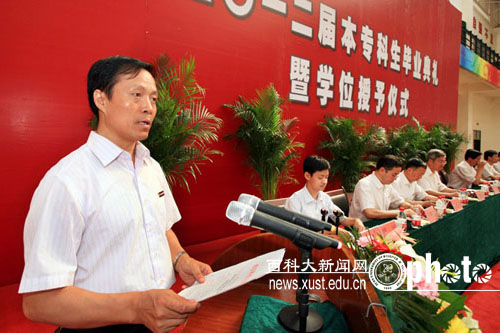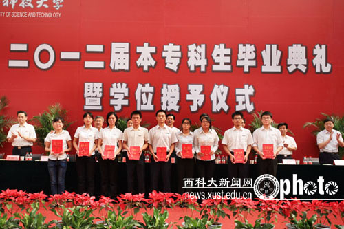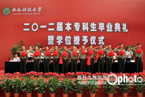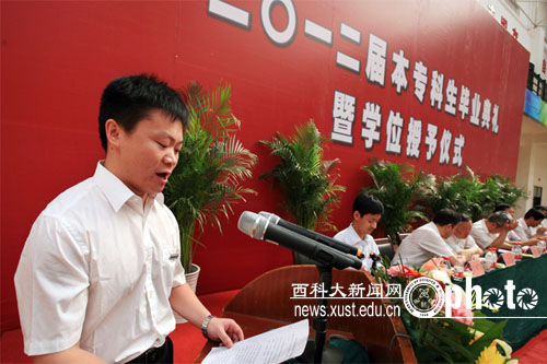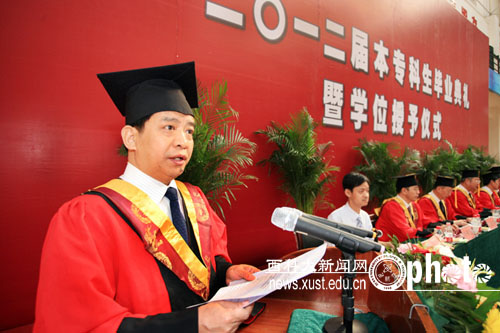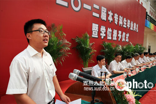 会上,副校长杨更社宣读了《关于准予2012届本专科学生毕业和授予学士学位的决定》,校党委书记刘德安、校长苏三庆为准予毕业及授予学位的各专业毕业生代表颁发了毕业证和学位证;校党委副书记张立杰宣读了《英国365集团官网关于表彰2012届优秀毕业生的决定》,校领导为受表彰的毕业生代表颁发了荣誉证书并为志愿到边疆、特种部队、飞行部队的国防生佩戴了大红花。毕业生代表万国青、在校生代表熊威、教师代表刘向荣教授分别做发了言。