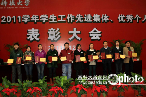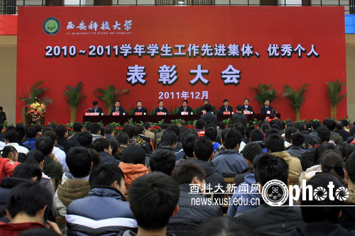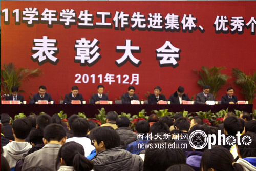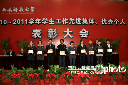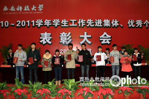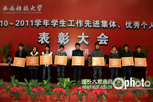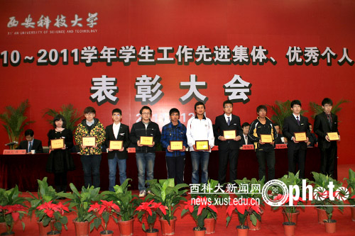 会上,副校长张金锁宣读了《关于表彰2010至2011学年学生先进集体、优秀个人的决定》等5个表彰文件。校领导向受表彰的先进集体、优秀个人颁了奖。获奖代表、“三好学生标兵”冯在梅同学在会上做了发言。