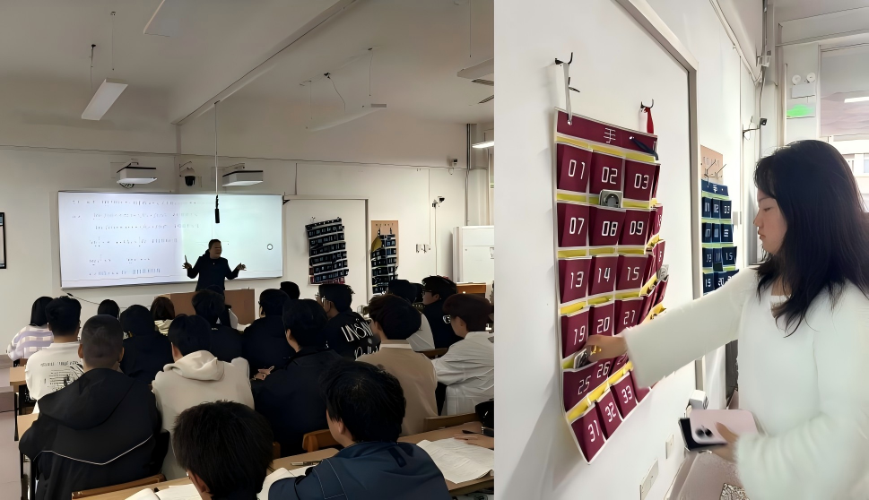 10月10日上午,英国365集团官网临潼校区3号教学楼的《高等数学》课堂上,理学院数学系付教授还在进行上课前的准备,建环2501班的副班长李雨杰便熟练地帮助同学将手机放进收纳袋,随后返回座位抬头看向讲台前的智慧主屏。