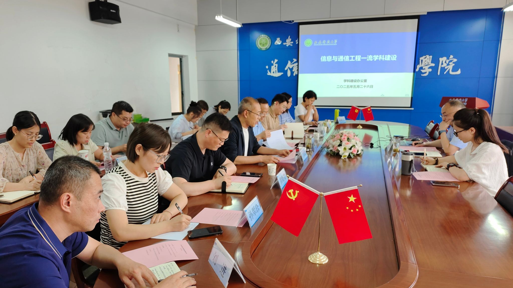 会上,发展规划与学科建设处负责人围绕“双一流”建设核心任务,系统总结前两轮建设的经验成效,介绍了信息与通信工程学科在第五轮学科评估中的表现,对照学科评估指标体系,全面梳理了学科建设所取得的成绩,并对当前存在的短板进行了剖析,同时明确了必须着力攻克的关键性指标。通信学院院长从学科方向凝练、高层次人才引育、科研团队组建、科研平台筹建、科技成果培育等方面汇报了信息与通信工程学科近期建设进展情况。