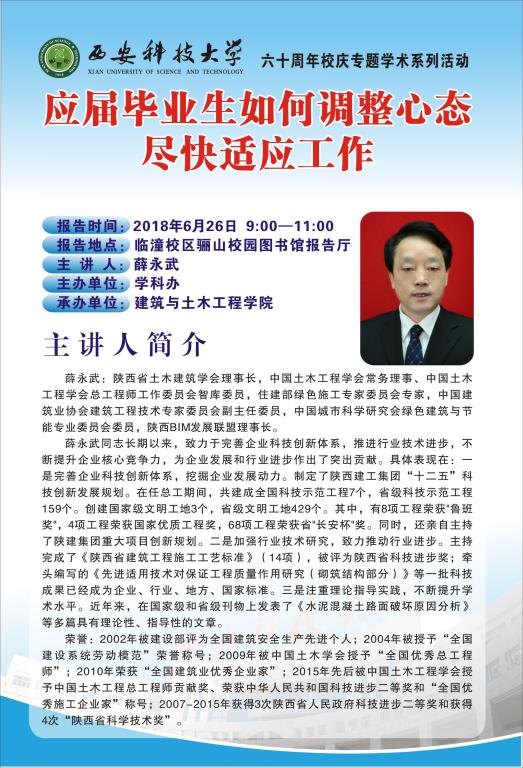 【学术报告预告】应届毕业生如何调整心态尽快适应工作