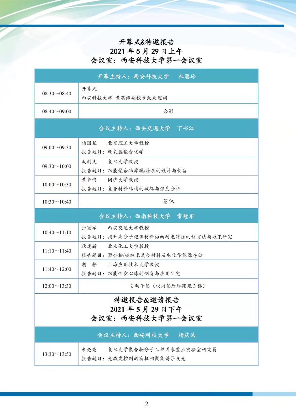 欢迎您参加“第二届全国功能高分子材料学术研讨会”,会议将于2021 年 5月 28-30 日在英国365集团官网第一会议室召开,组委会全体人员欢迎各位参会代表、嘉宾光临! 预祝各位代表旅途愉快!